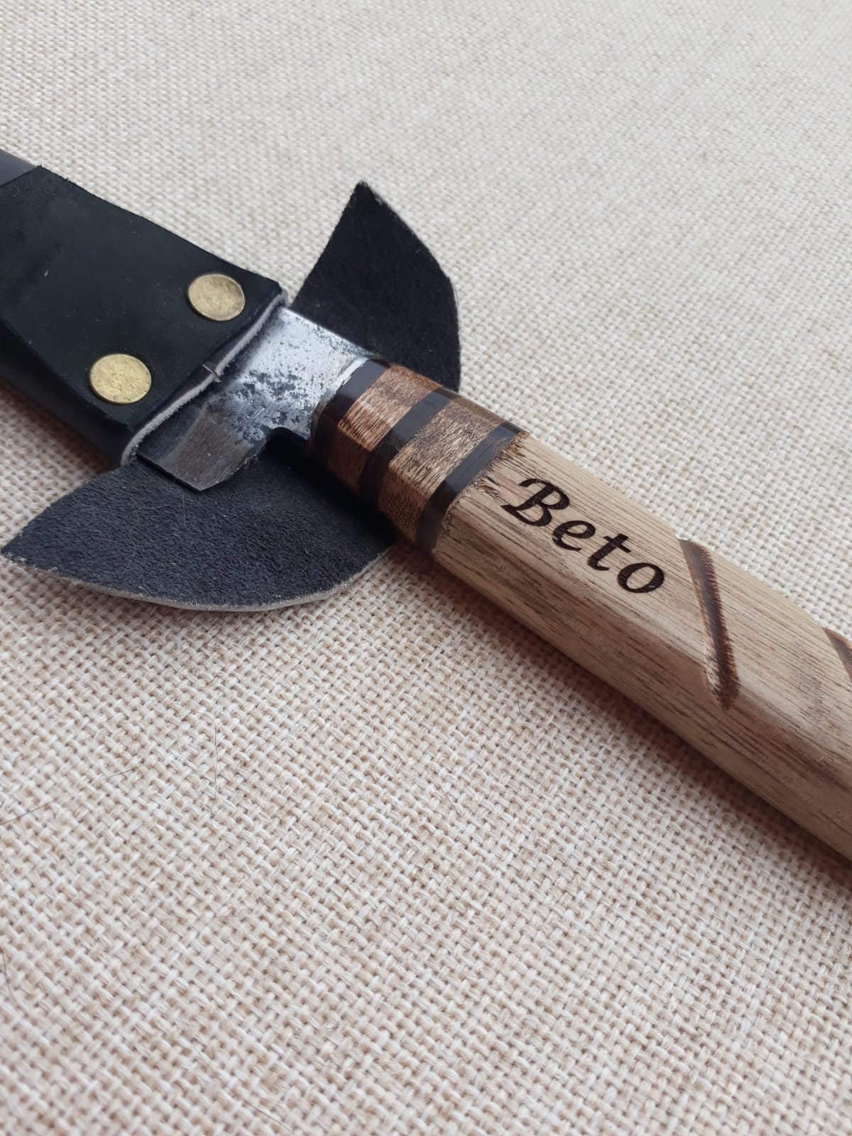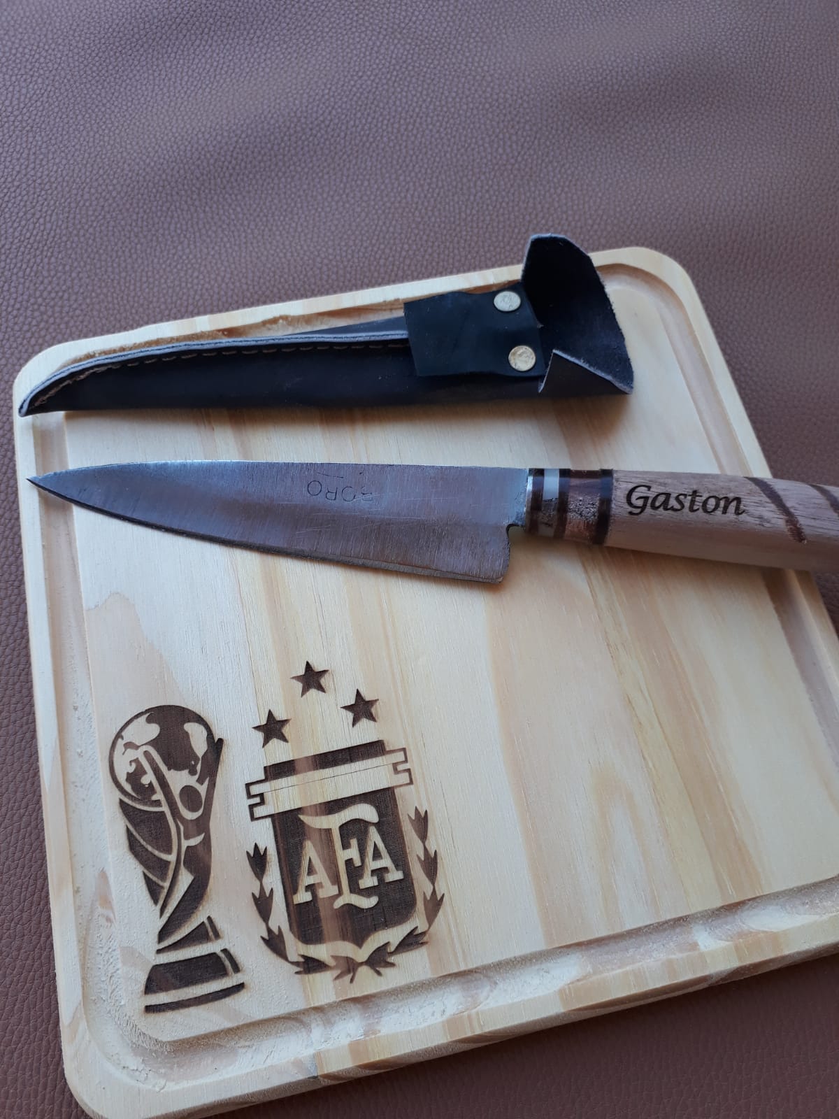 el grabado se puede realizar en el plato, en la empuñadura del cuchillo o la hoja del cuchillo