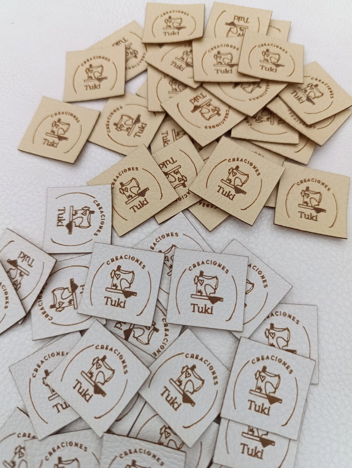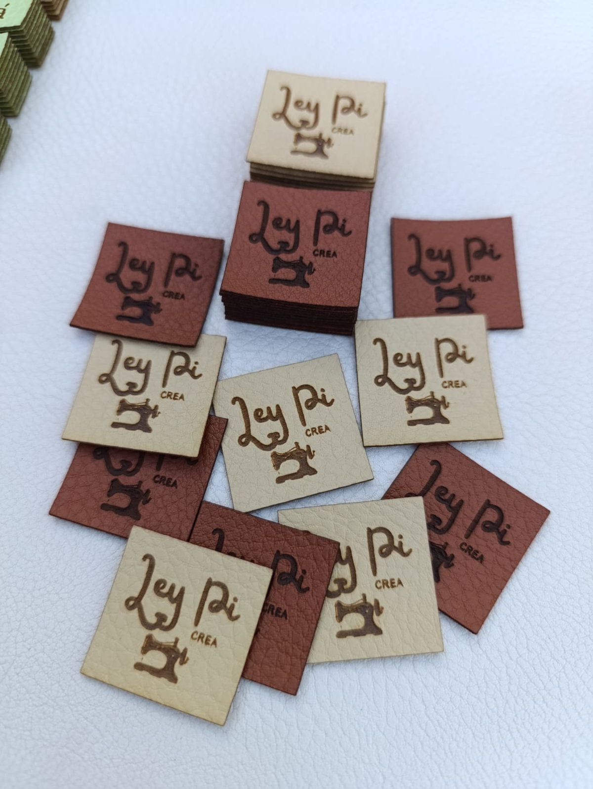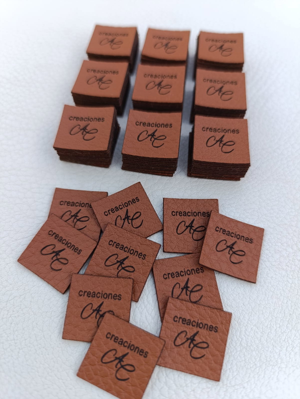 Etiquetas de eco cuero Cuadradas en la medida que quieras con tu logo o marca