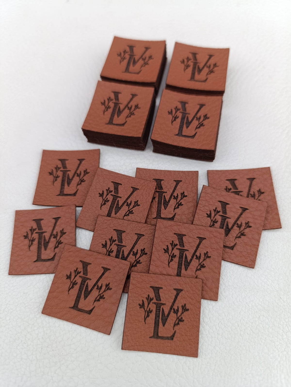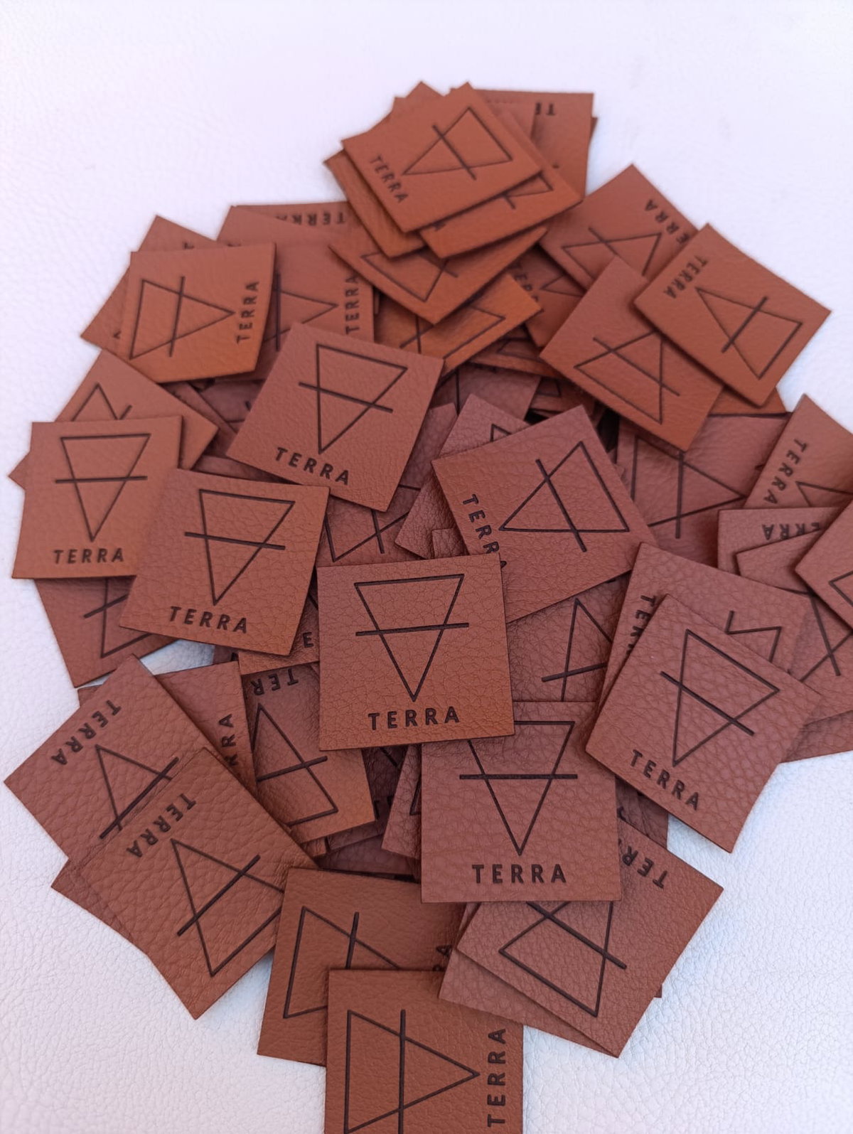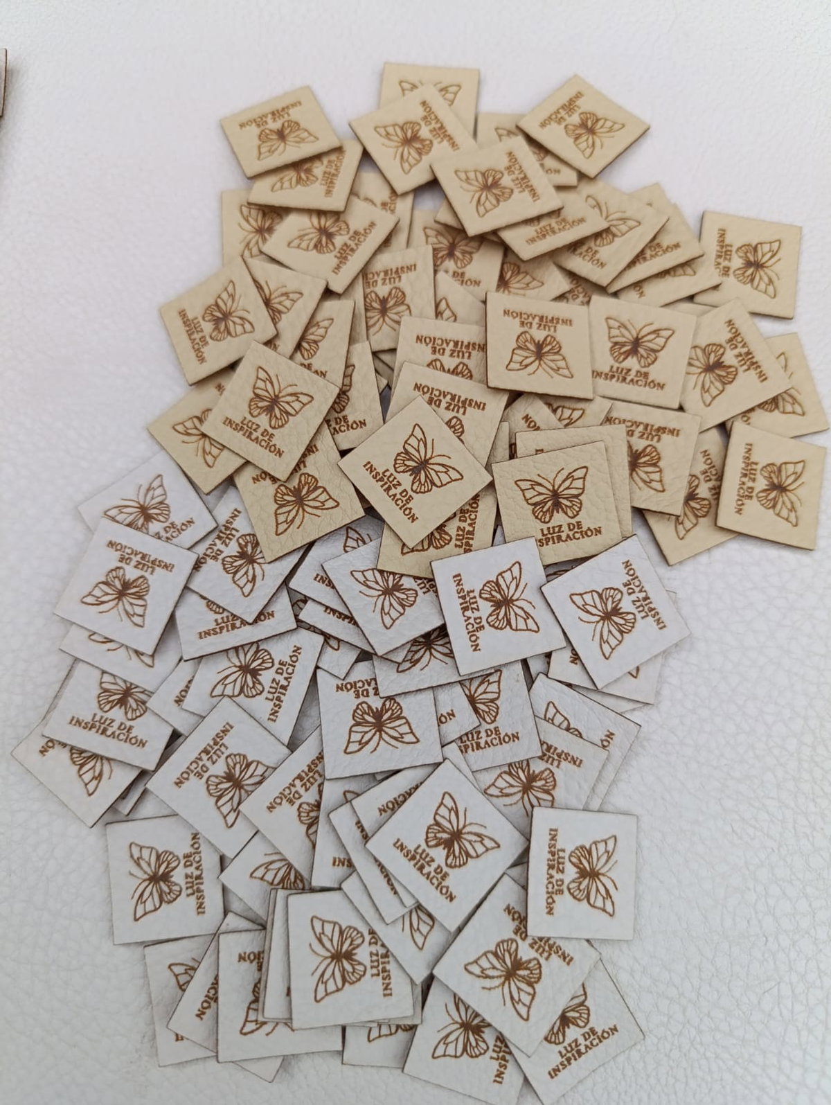 Etiquetas de eco cuero Cuadradas en la medida que quieras con tu logo o marca
