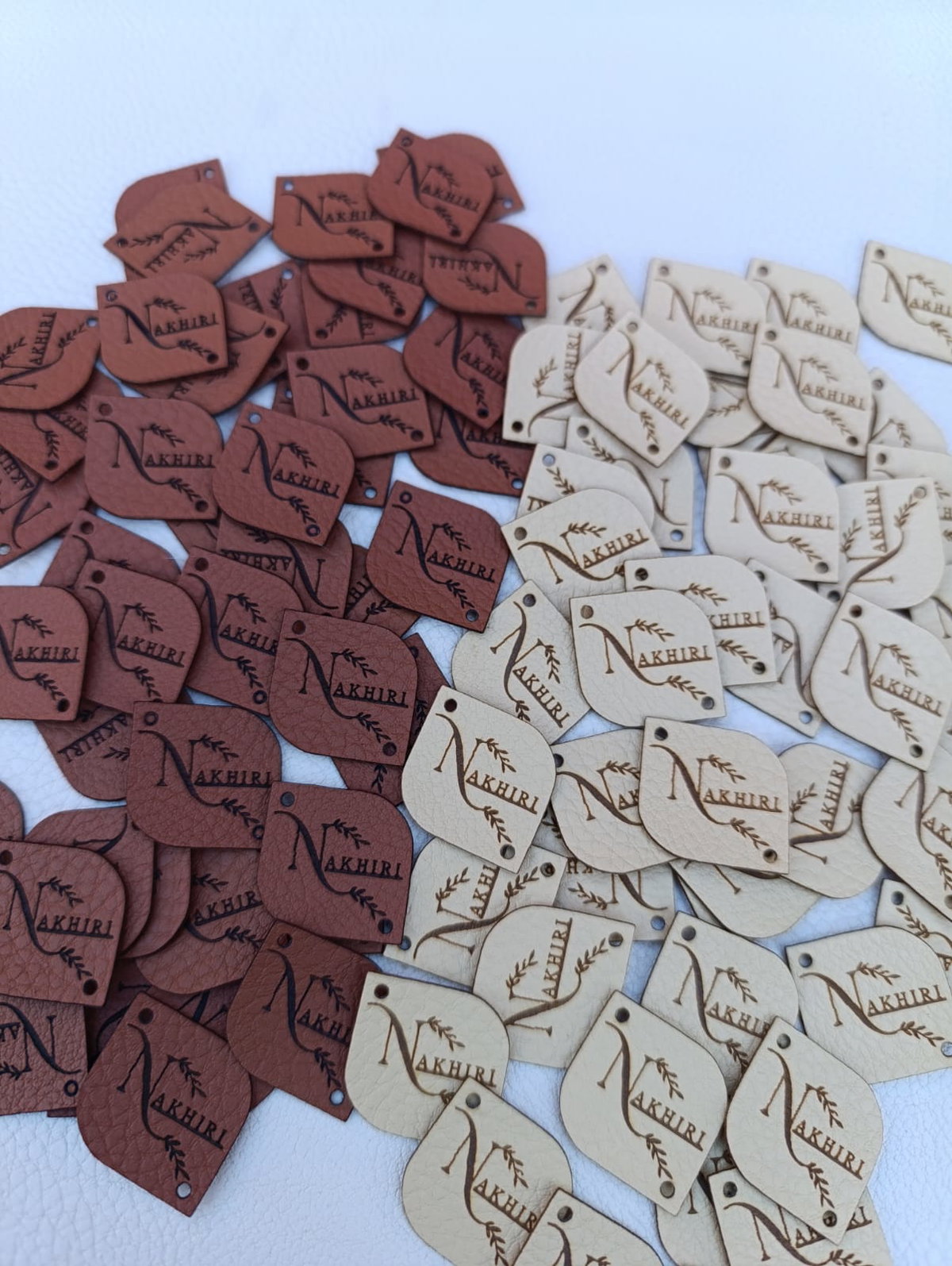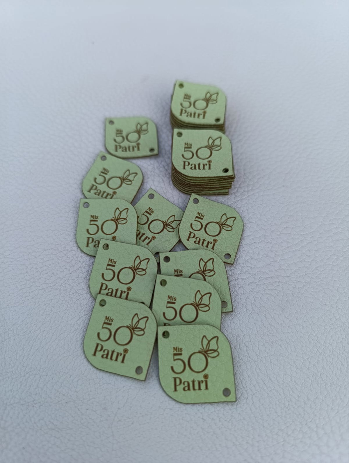 Etiquetas de eco cuero Hojita en la medida que quieras con tu logo o marca