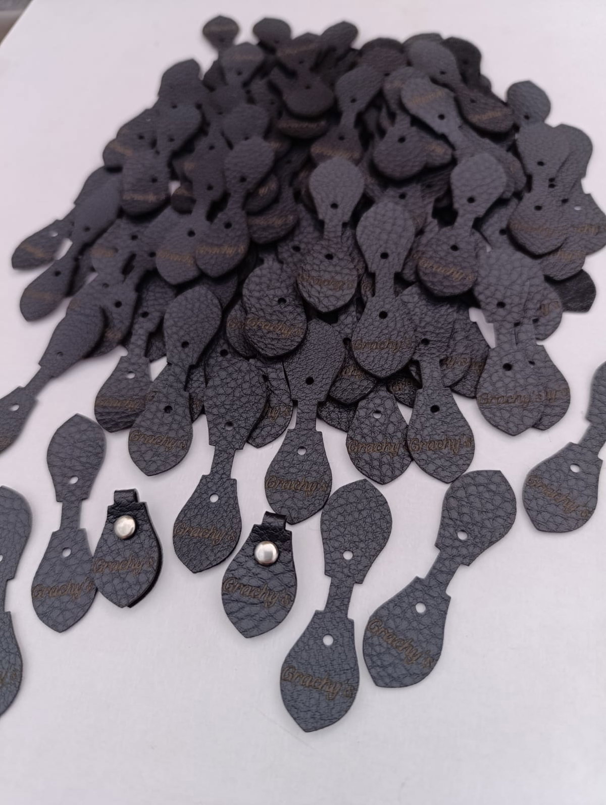 tira cierres tipo gota con grabado simple, es decir, grabado de un solo lado