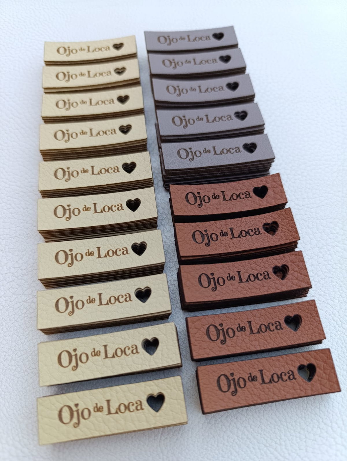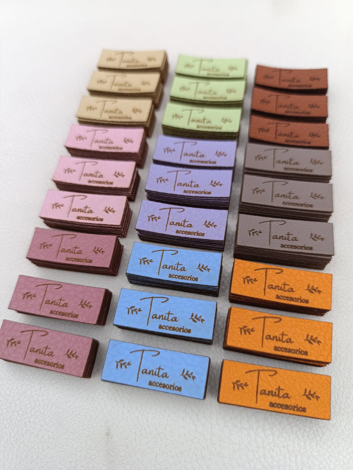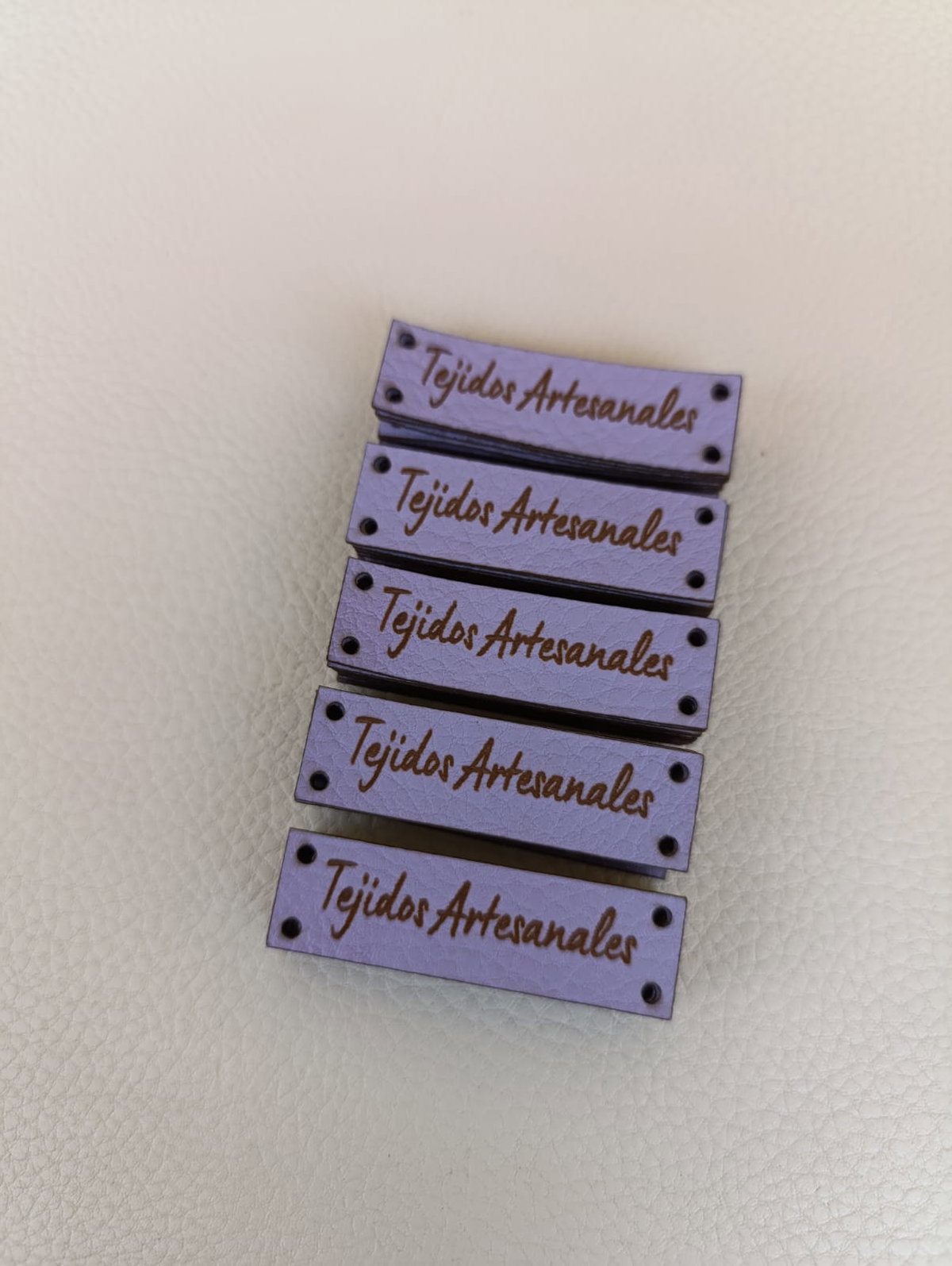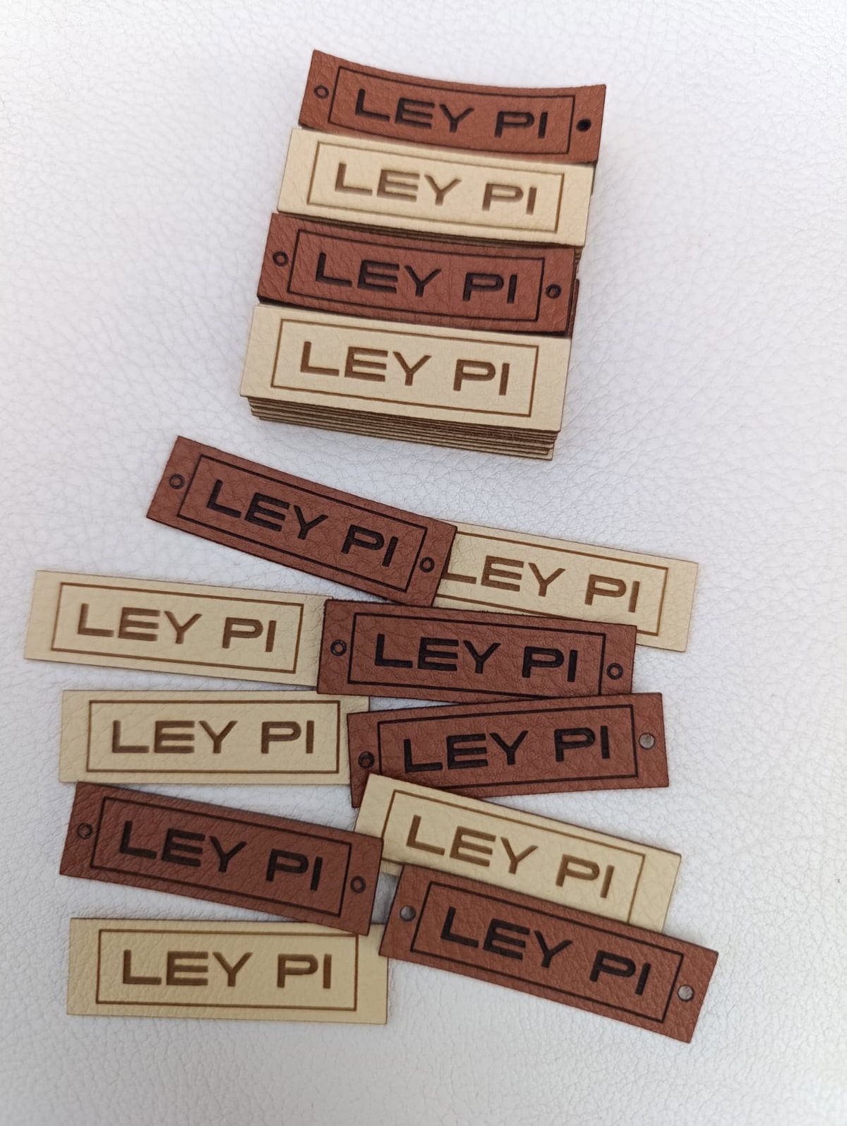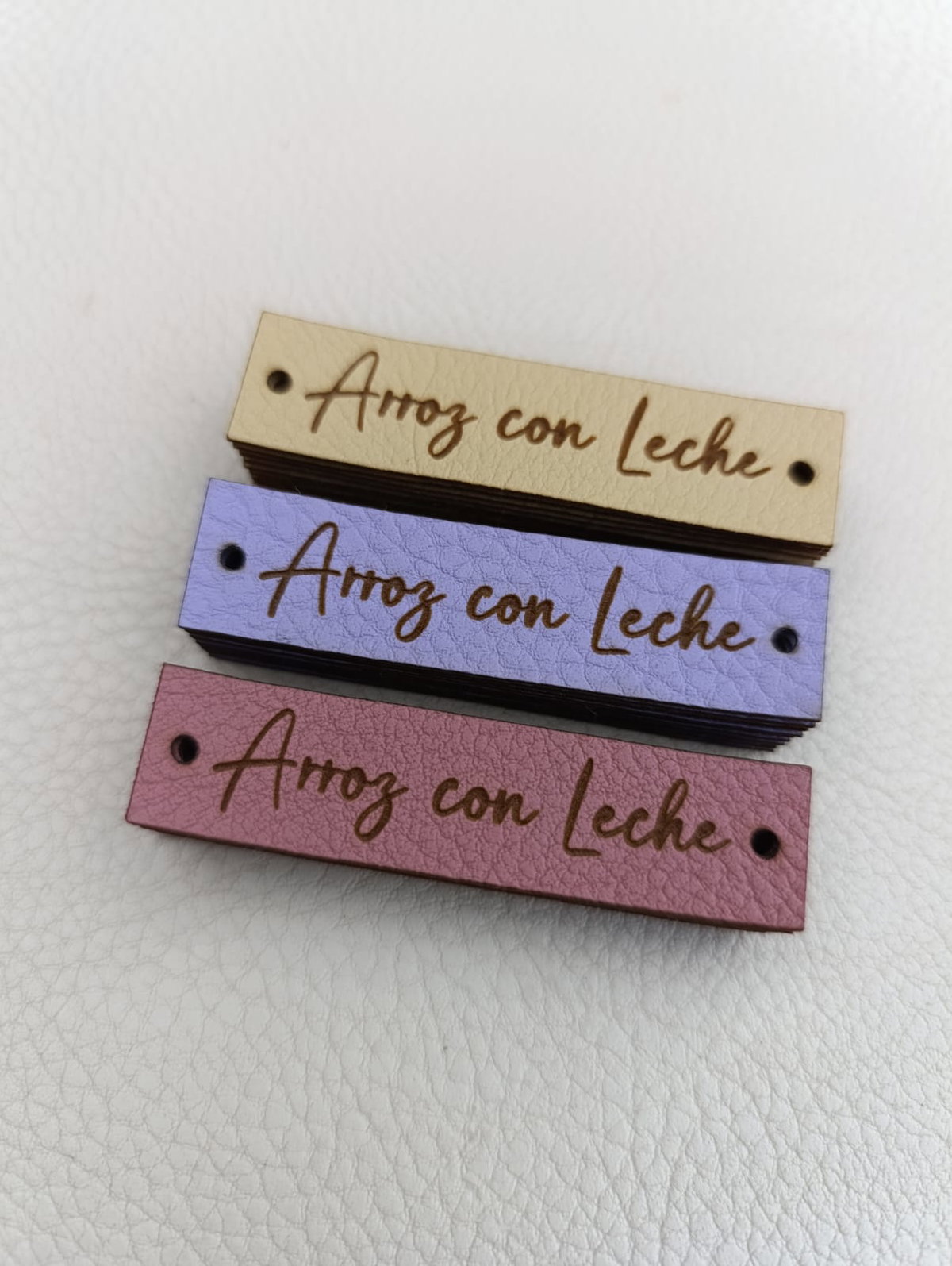 Etiquetas de eco cuero rectangulares en la medida que quieras con tu logo o marca