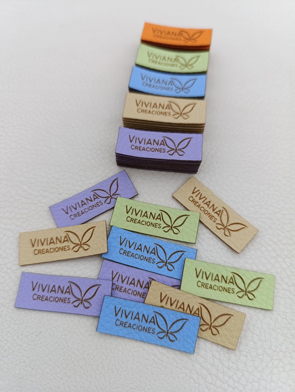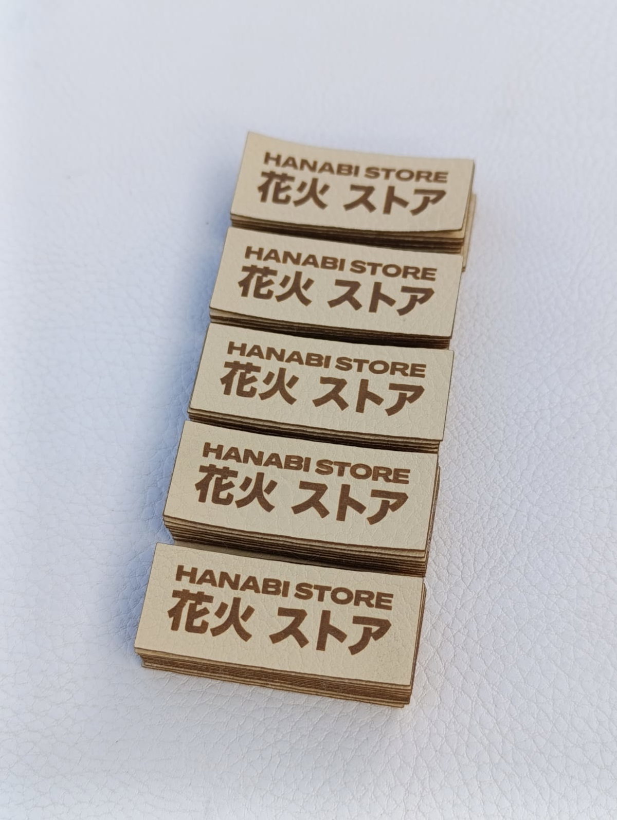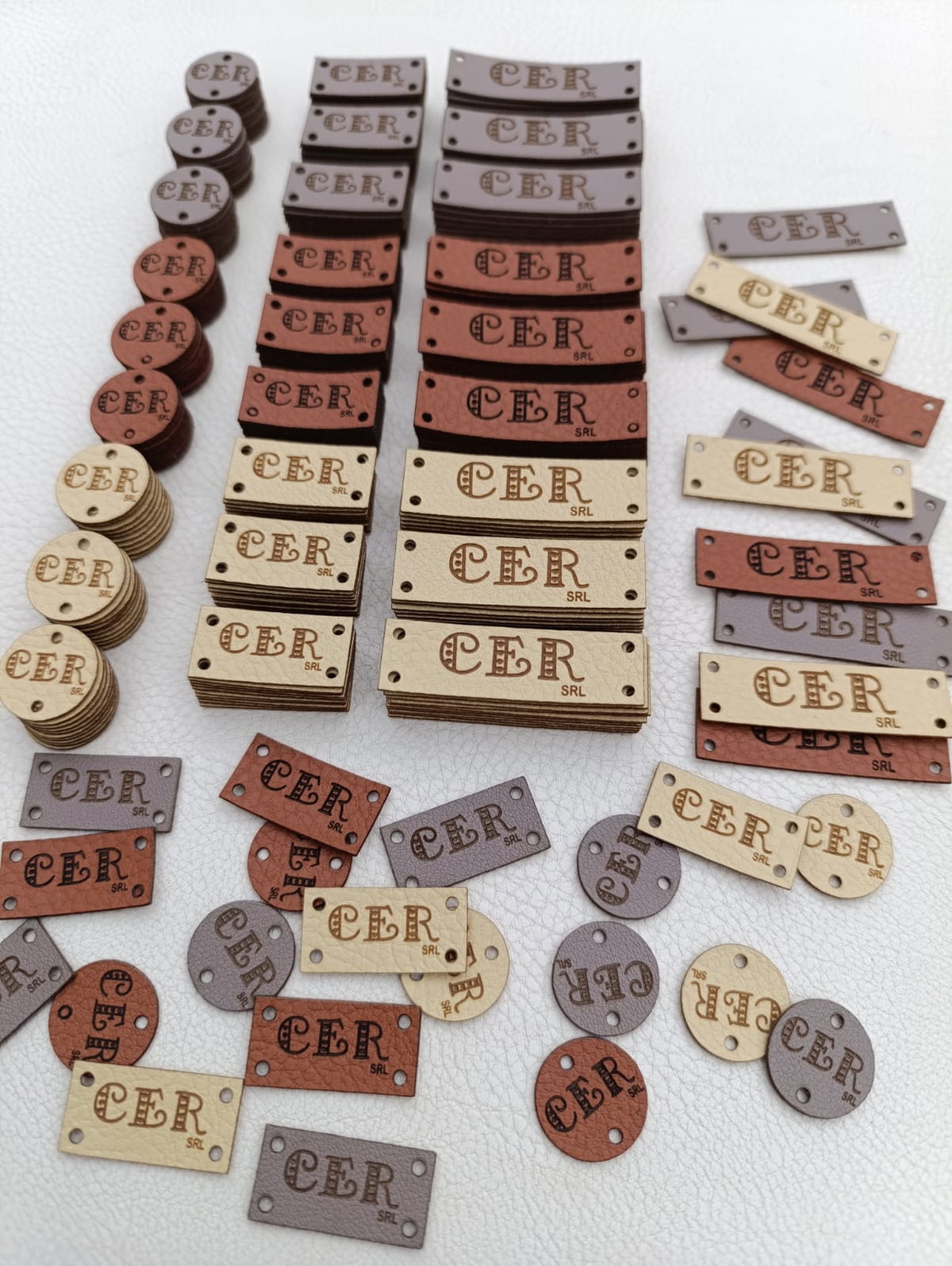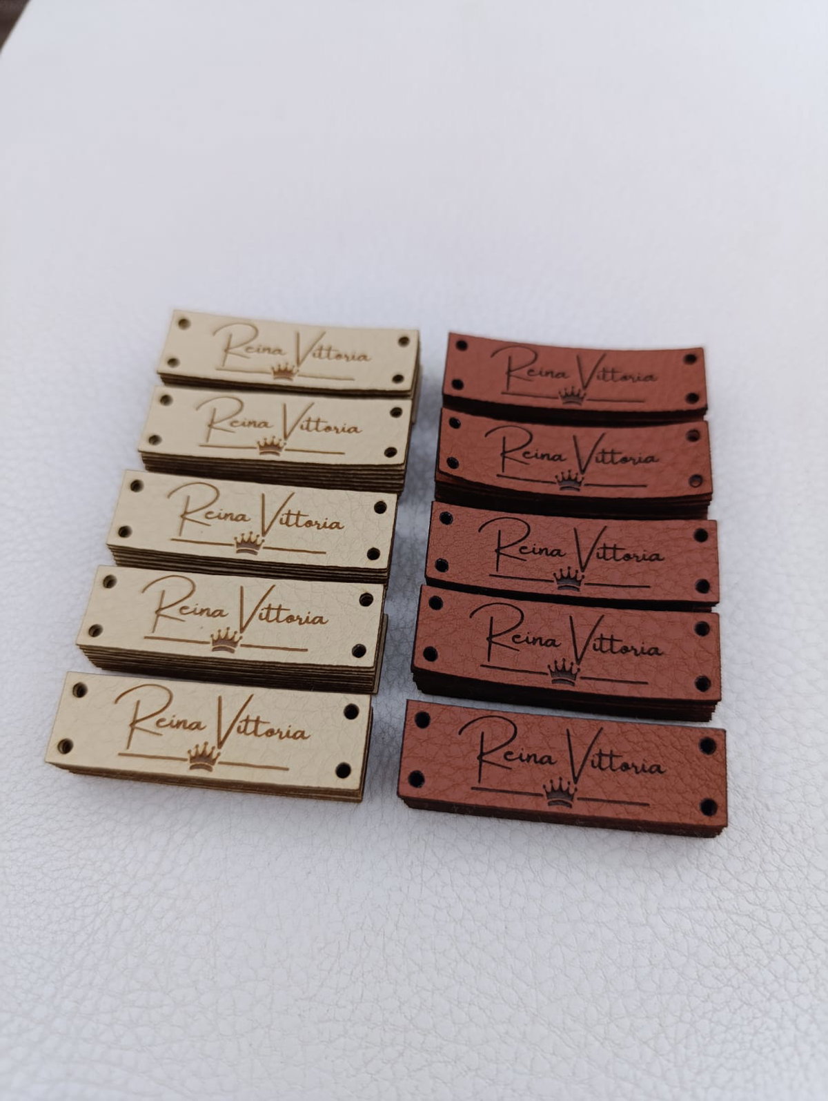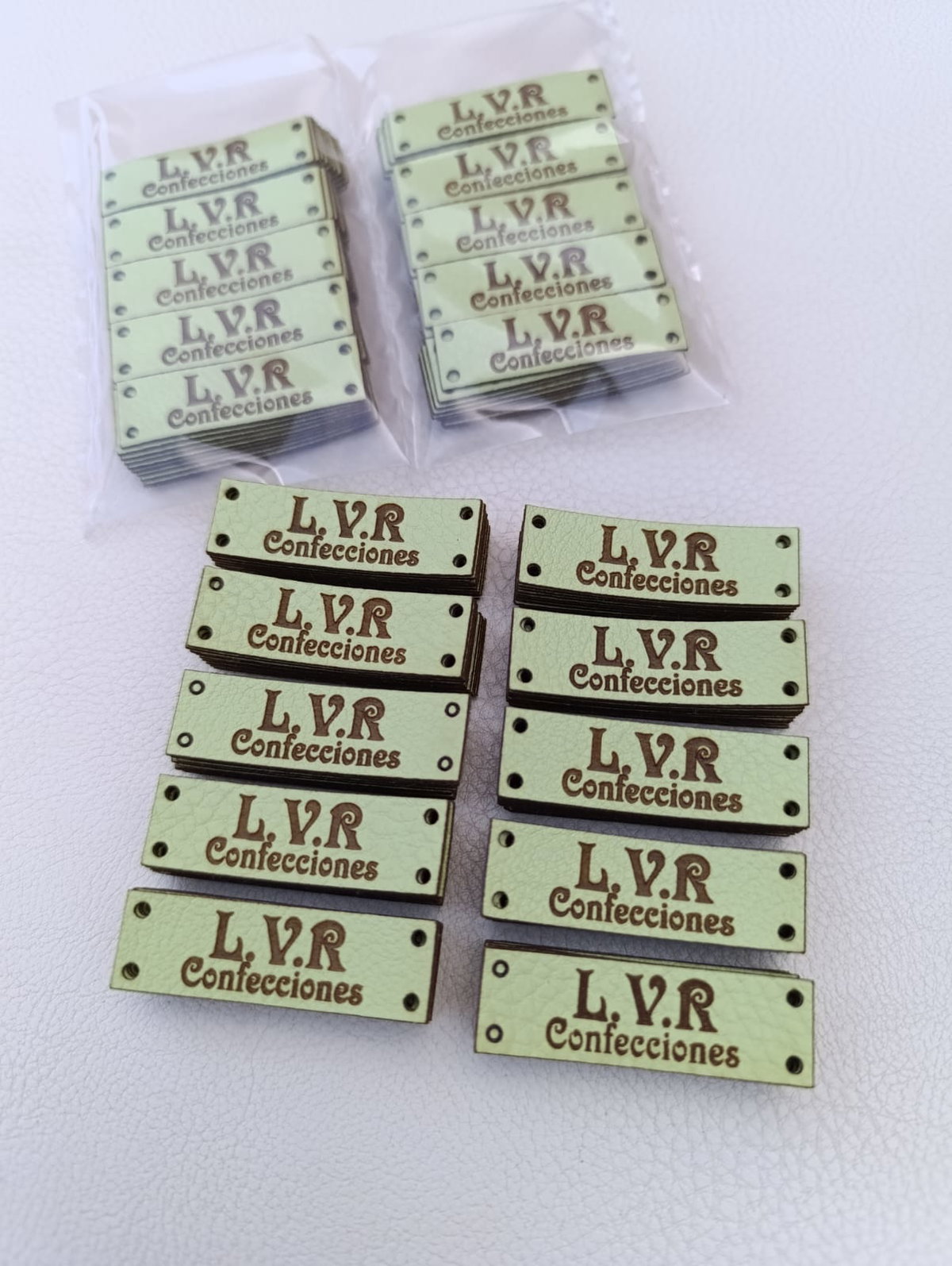 Etiquetas de eco cuero rectangulares en la medida que quieras con tu logo o marca