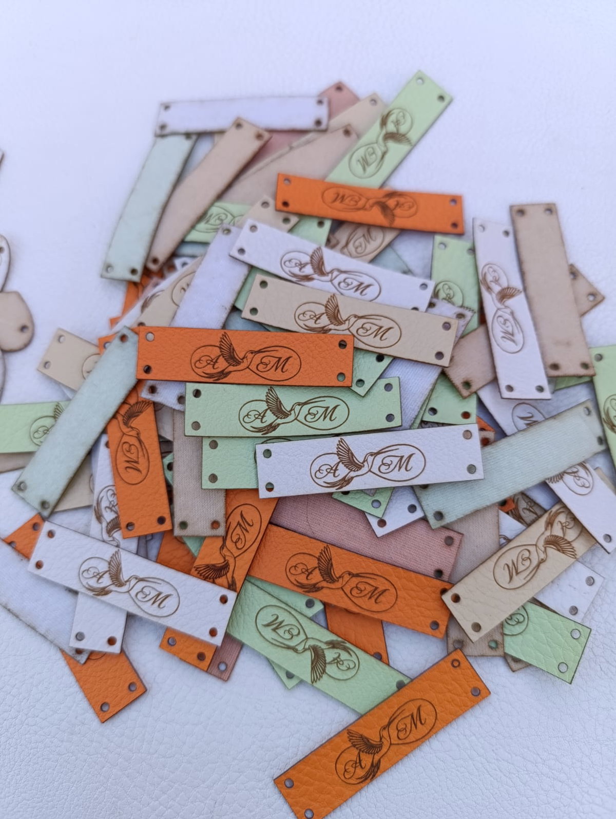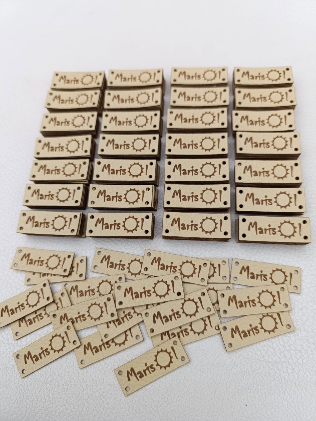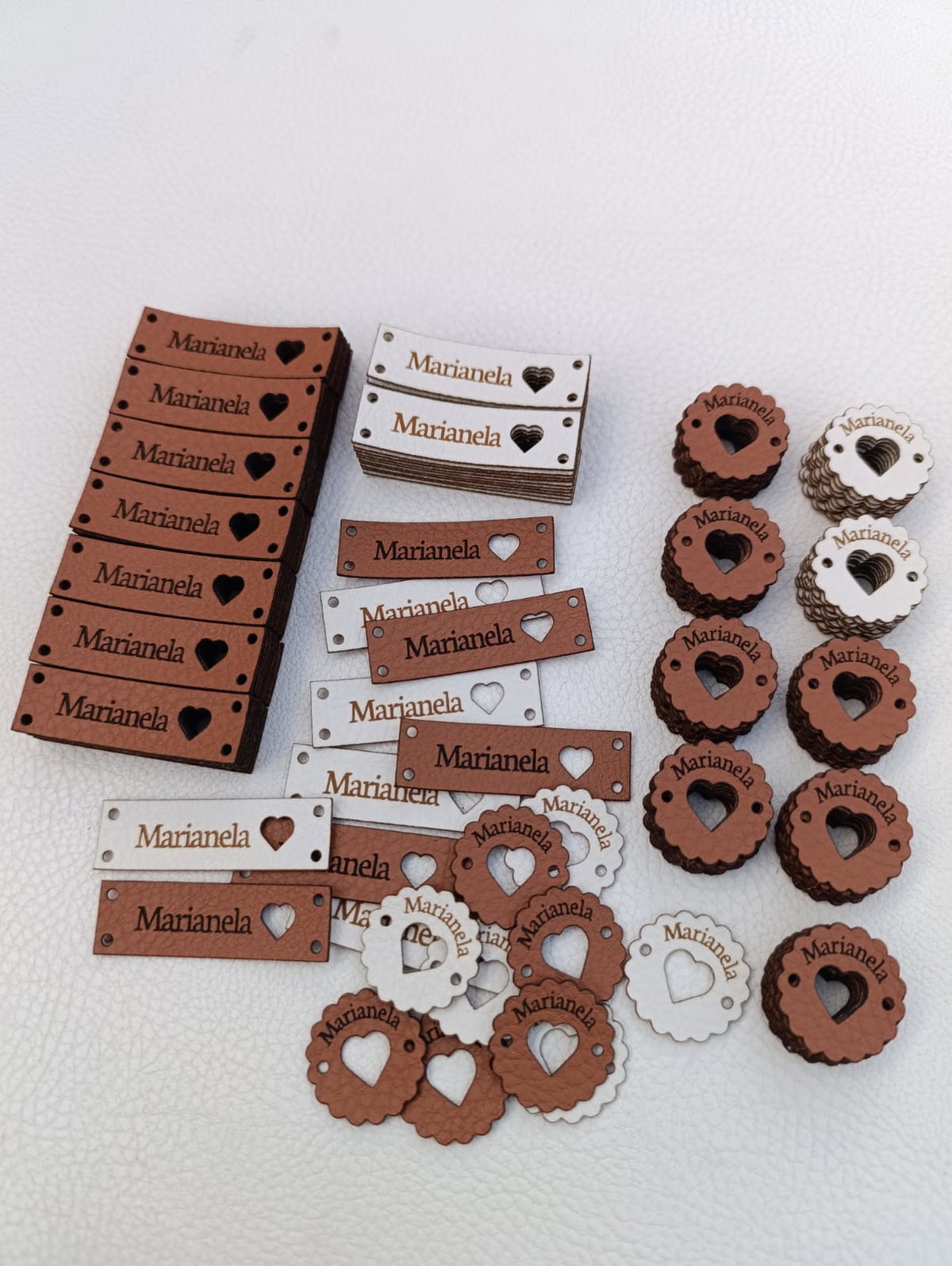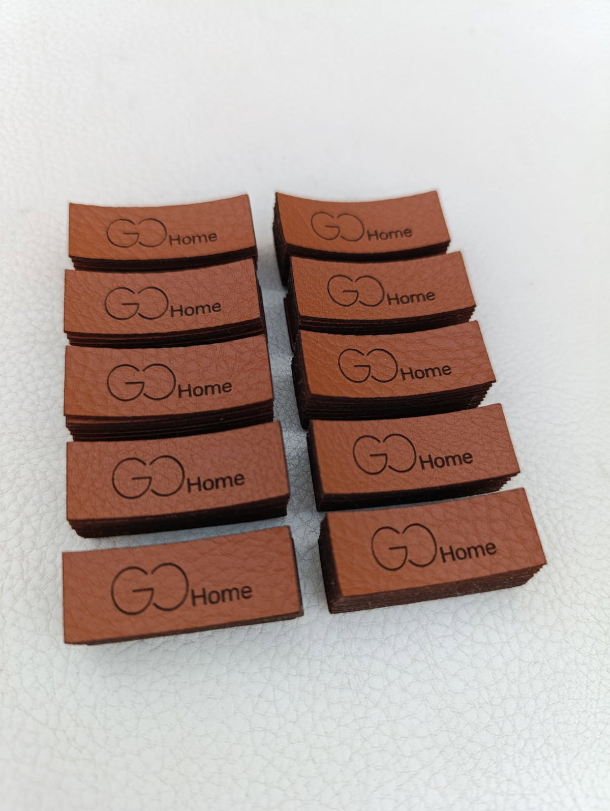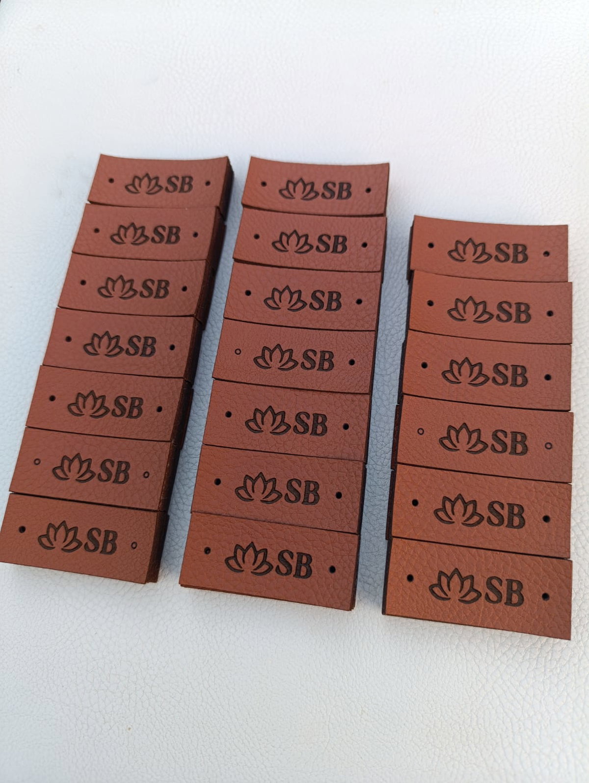 Etiquetas de eco cuero rectangulares en la medida que quieras con tu logo o marca